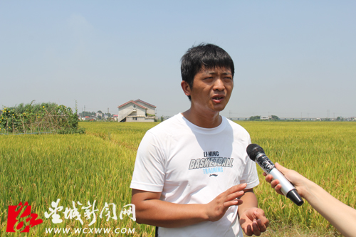 在验收组专家的指导下,沙道湾生态农业粮食生产基地负责人虢祥文,也正忙着对兴旺村示范基地种植的300亩早稻进行测产。虢祥文站在正在测产的农田前告诉记者:“专家们今天来我很有信心。这一块农田的收成还不算最好的,下面还有一亩产量更高的!”