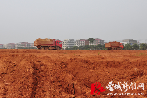 虎形山片区加快土方平整。图为渣土车正在外运土方。高亮 摄