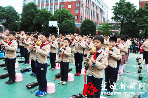 本站5月30日讯(记者 高亮)千余名小学生共奏葫芦丝、同跳京剧操、齐诵国学经典……5月29日,望城金海学校举行课程改革成果展示活动,向在场家长们集中展示学校素质教育成果。