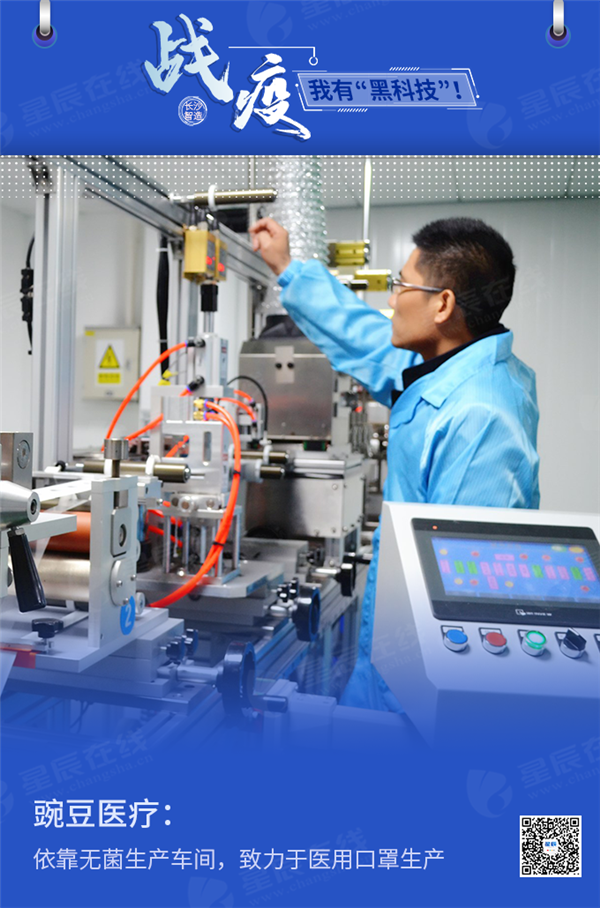 位于长沙经开区的湖南豌豆医疗用品有限公司是一家覆盖医疗耗材和家用医疗产品两个领域的研发、生产、销售和服务为一体的科创型制造企业。公司属于国家重点产业中的医疗器械科技产业,专业研发、生产基层卫生医疗体系建设所需的基础型先进实用耗材产品、临床诊疗中依赖进口的中高端医疗器械、微/无创治疗以及未来医学模式变革相适应的创新医疗器械产品等。医用口罩与防护服原属于其2020年下半年的生产计划,基于“战疫”需要,目前,依靠公司自有的无菌生产车间,正加紧联系国内3M口罩生产线供应商,尽快实现医用口罩生产落地。