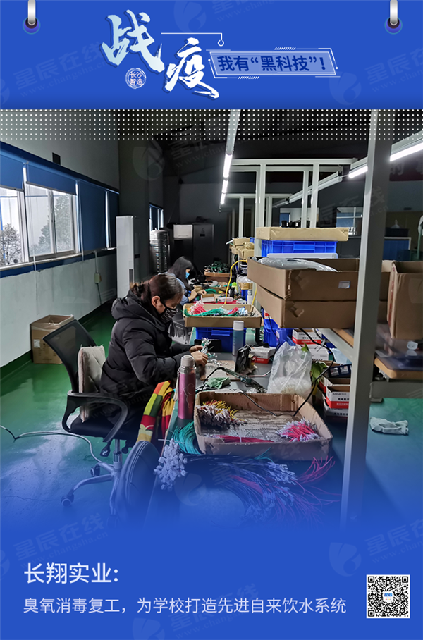 湖南长翔实业有限公司是一家生产校园直饮水设备,节后复工利用自身优势,使用臭氧为员工消毒,搭建出了一条特色防控通道。进入长翔实业,首先要进行体温测量、登记信息和清洗双手。进入车间大门前,男女员工被安排进入两处单独房间,在房间中更换鞋套,全身进行臭氧消毒后,才能从房间的另一侧进入厂区。基于领先行业的臭氧消毒技术,长翔实业打造了校园直饮水设备——长翔分机网络智能净化保质自来饮水系统,有效地解决了取水终端分机环境空气对出水水质的二次污染问题,也不会出现菌落总数超标的情况,免除了分机的清洗工作,其出水水质做到了除害留益、补氧增氧、循环流动、环保保质。