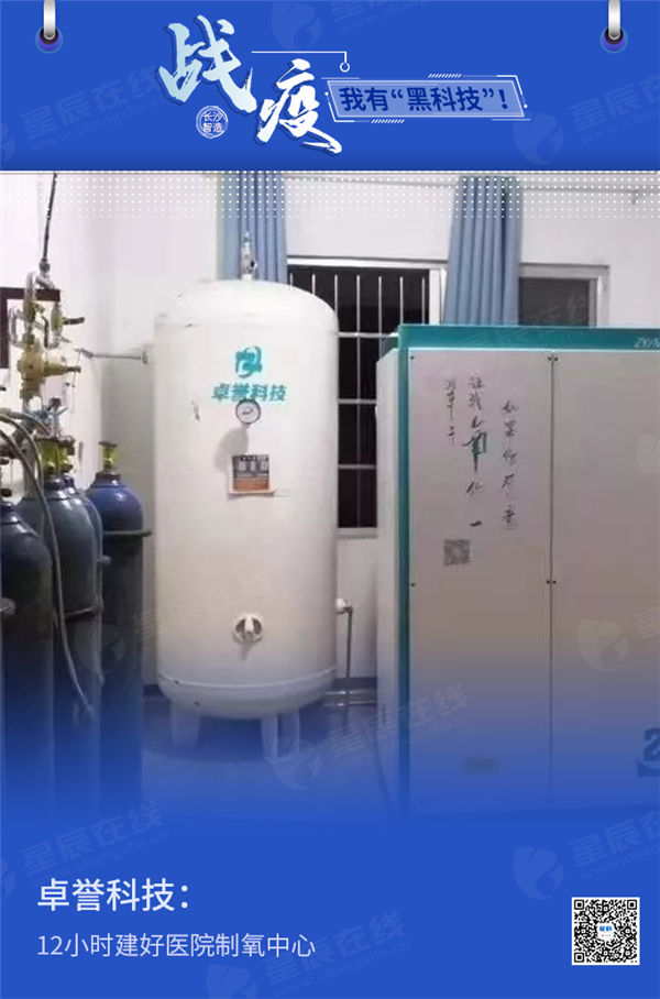 1月31日中午,卓誉科技负责人接到一个紧急任务,要求在12个小时内给长沙县第一人民医院(长沙县新冠肺炎指定收治医院)建好一套医疗制氧系统。中午接到指挥部通知,下午运设备运过去,连夜吊装作业,12小时内,他们准时完成了任务。据悉,卓誉医疗制氧系统可以做到最快2小时快速安装;插电即用,快速产氧;寿命十年以上,基本免维护,使用非常方便。公司的微压氧仓,还可以用于轻症患者的吸氧支持和康复。
