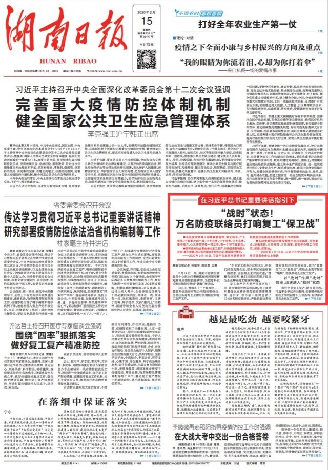 原载《湖南日报》(2020年2月15日01版)