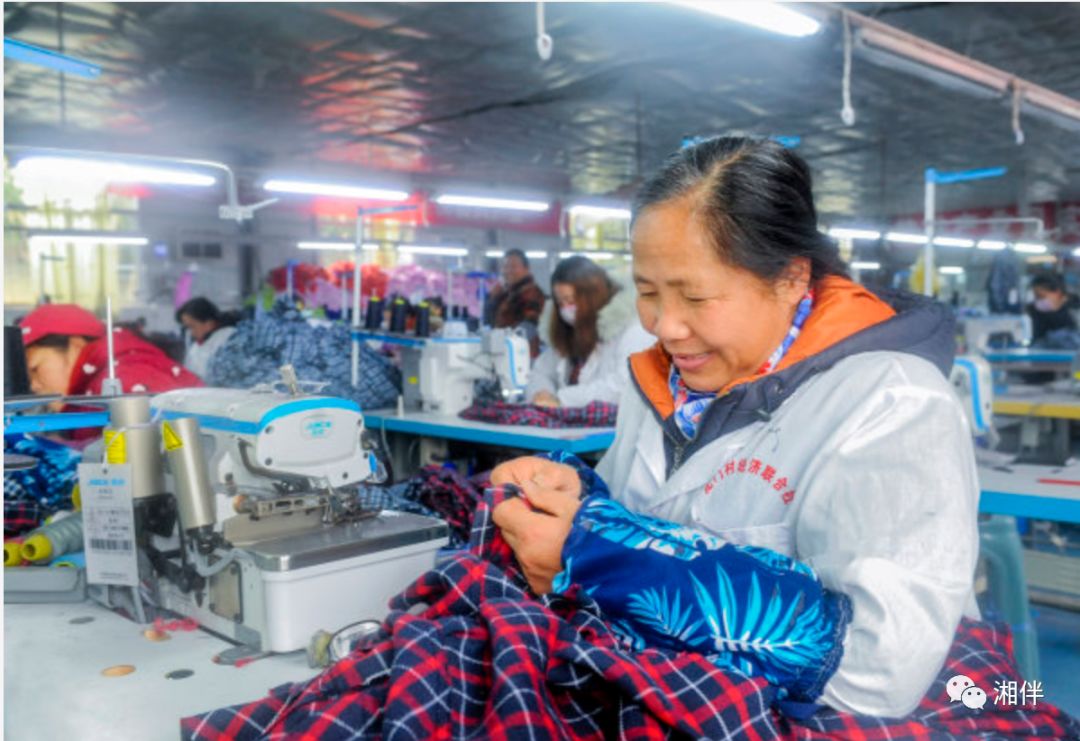 花垣县龙潭镇龙门村服装厂,村民在加工服装。2019年5月,龙门村建成投产的服装加工厂,帮助当地贫困劳动力及留守妇女120余人实现在家门口就业增收。龙爱清 摄